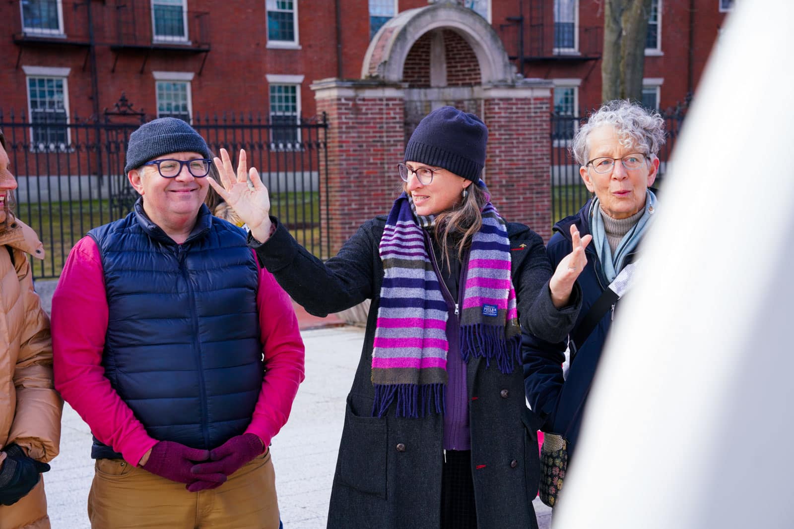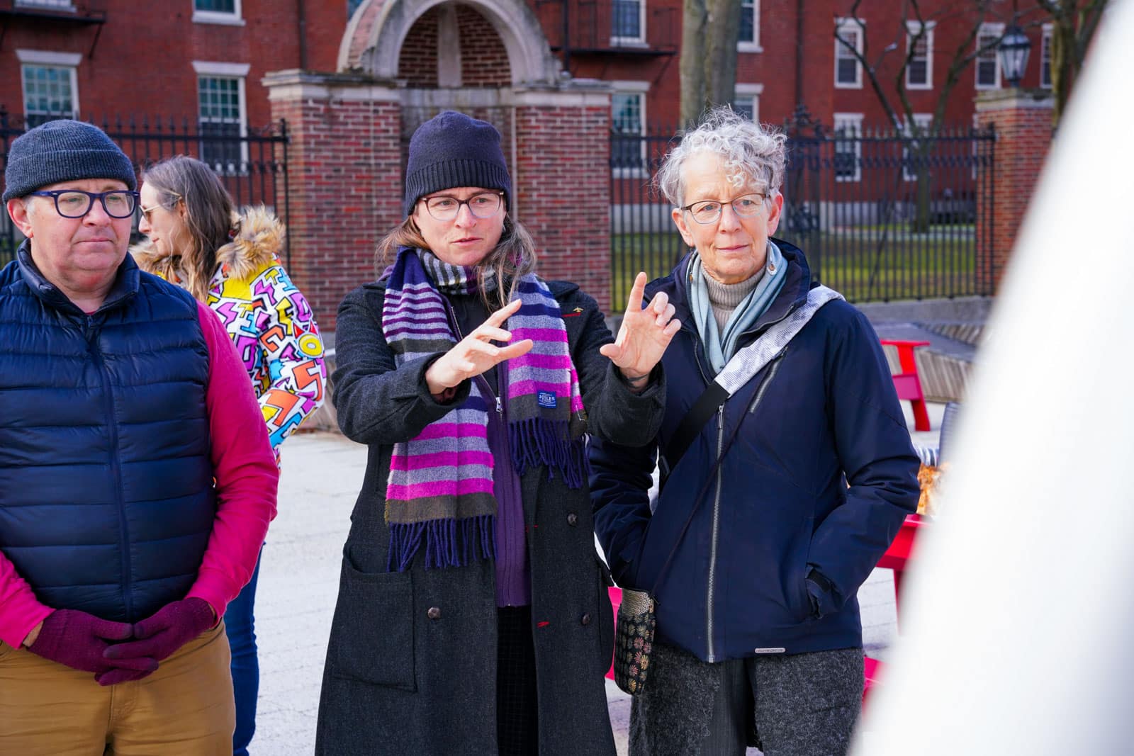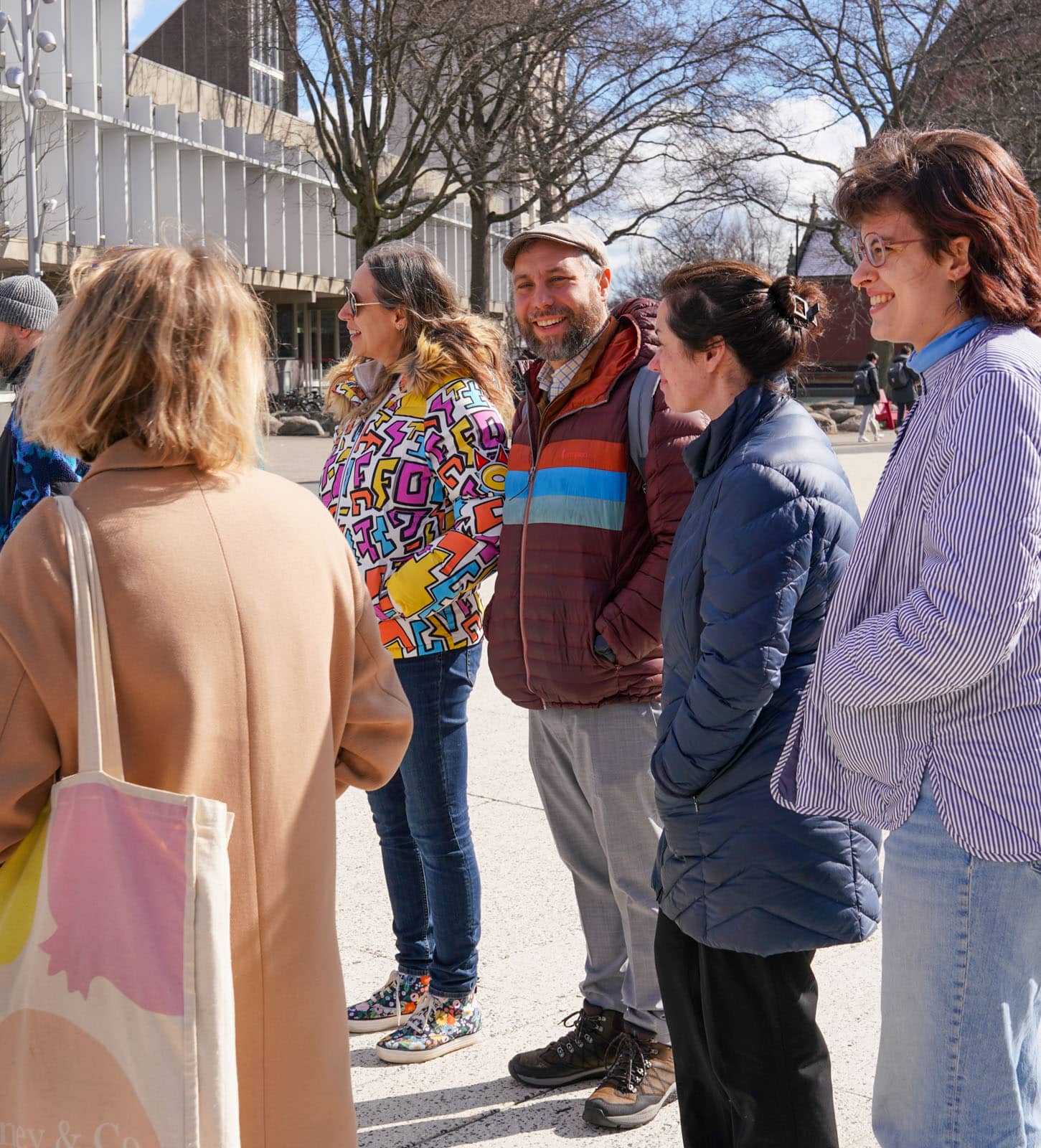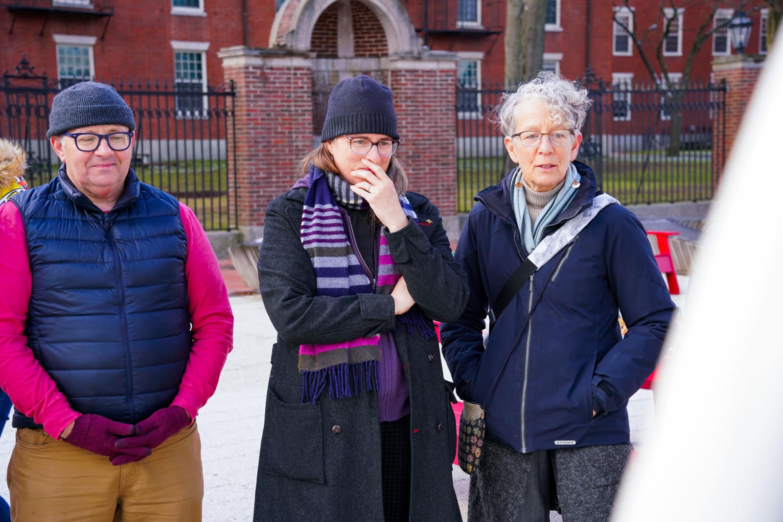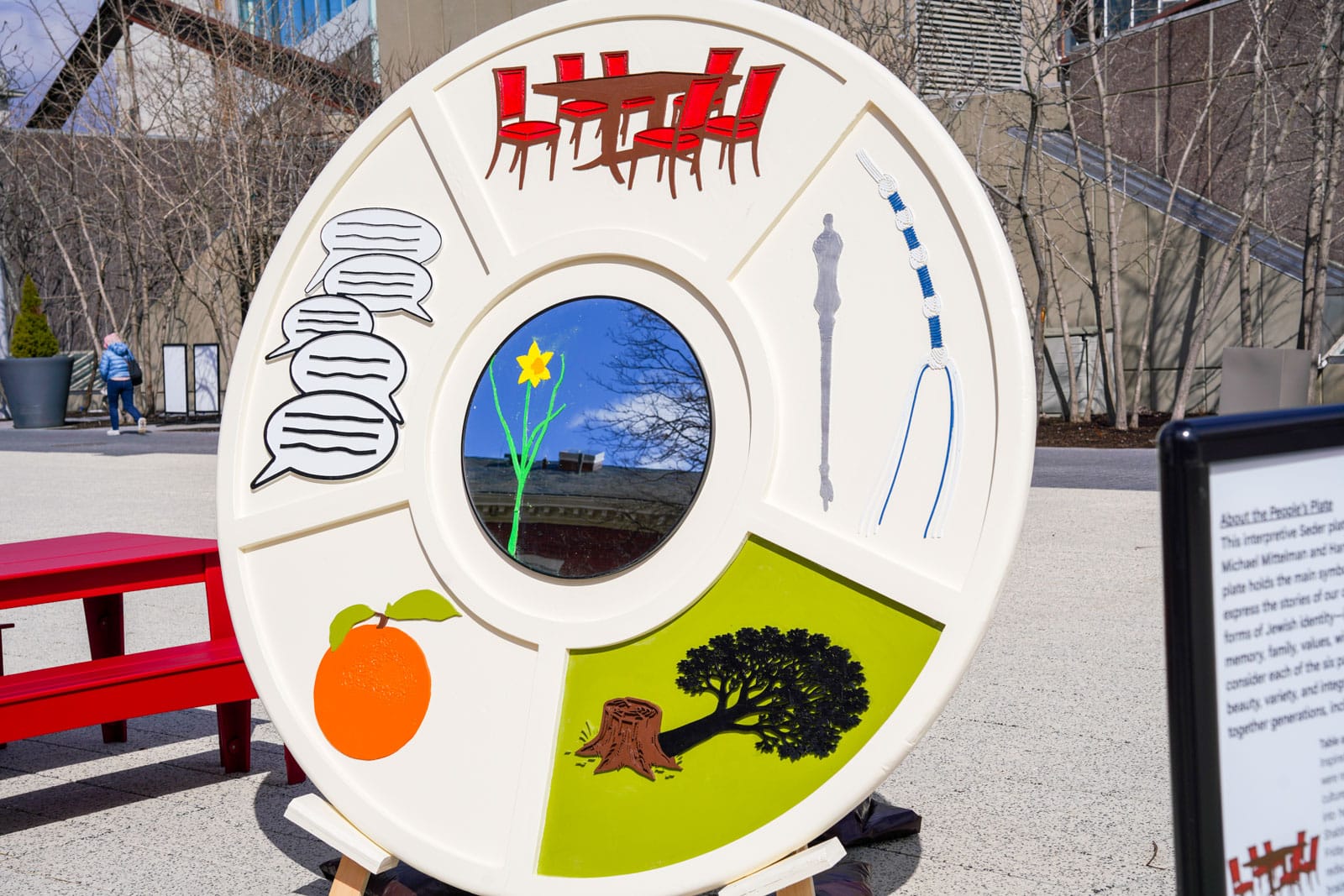 Under the morning sun and alongside the newly installed nine-foot sculpture, dozens of students, chaplains, university staff, and curious passersby stopped to engage directly with artist Michael Mittelman. Over hot coffee and pastries, the artist shared the stories behind the installation’s panels—each representing a unique thread of Jewish identity and belonging at Harvard—while neighbors and colleagues connected through shared conversation and art.