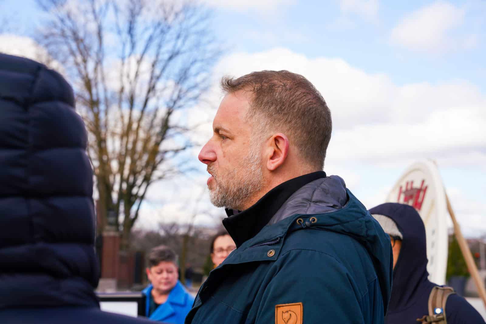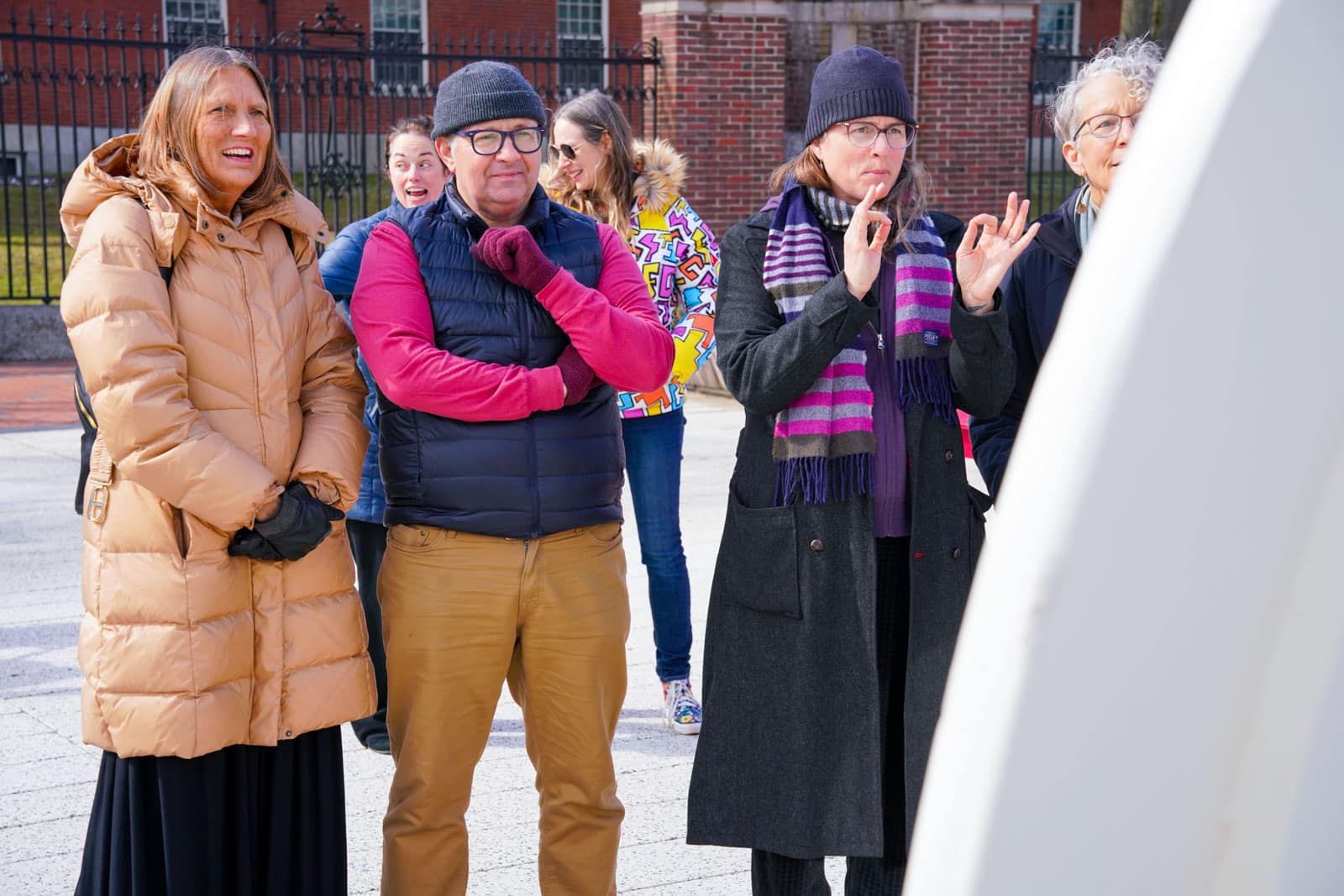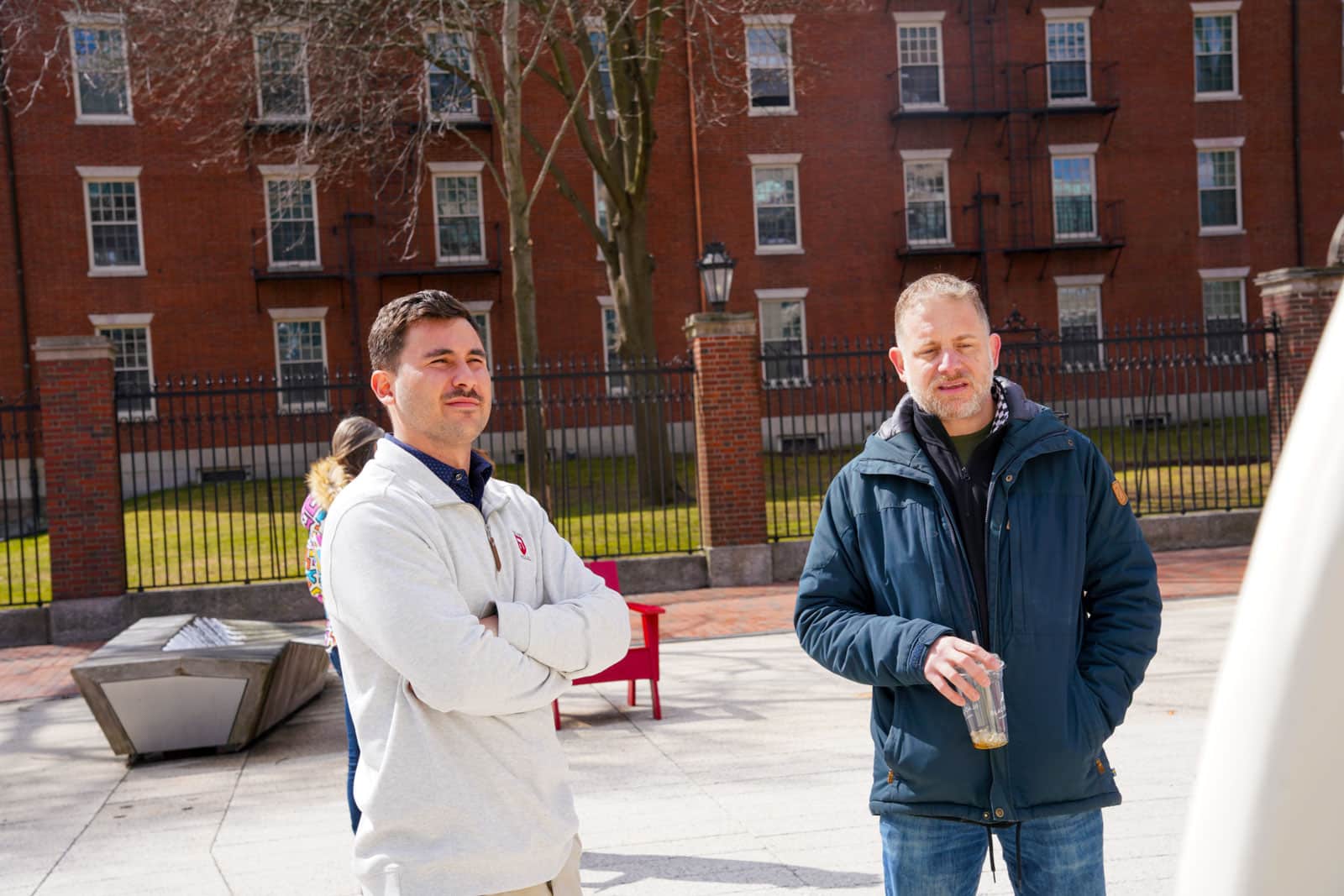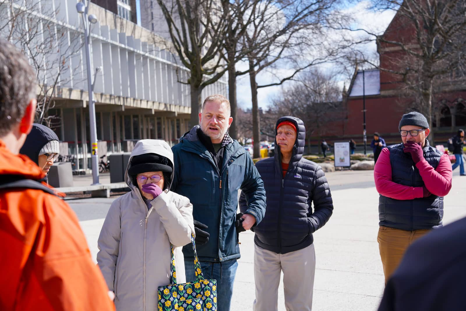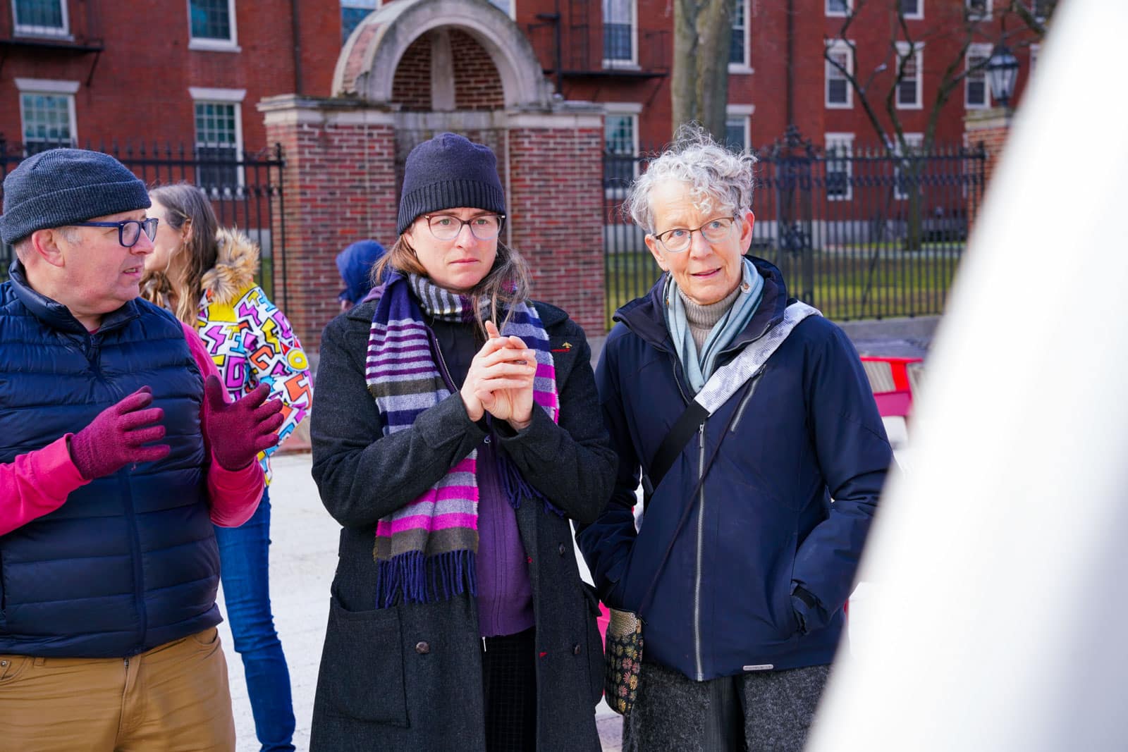 Under the morning sun and alongside the newly installed nine-foot sculpture, dozens of students, chaplains, university staff, and curious passersby stopped to engage directly with artist Michael Mittelman. Over hot coffee and pastries, the artist shared the stories behind the installation’s panels—each representing a unique thread of Jewish identity and belonging at Harvard—while neighbors and colleagues connected through shared conversation and art.