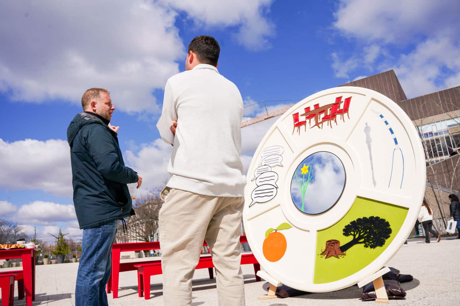 Following the previous night’s celebration, the community gathered in the Science Center Plaza on March 24 for an intimate “Meet the Artist” morning.